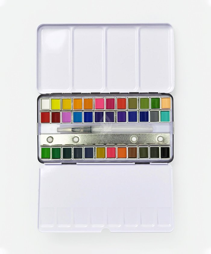 Keep Smiling 12pcs Aquarelle Solid Watercolor Paints Transparent Colors With One water brush with palette and sponge